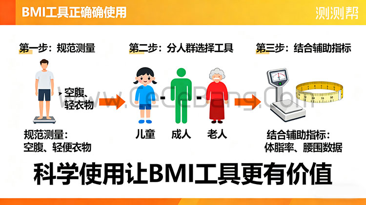 - 选择细分工具:优先使用分年龄、分人群的 BMI 在线工具,比如儿童专属工具会结合年龄性别,老年人工具会调整参考范围。